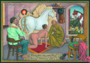 Boccaccio’s Decameron is an extraordinary book. It is one of the most famous texts in world literature. Sławomir Chrystow has had been preparing excellent illustrations decorated with real gold for us over the years. The unique leather bindings with inlays, also decorated with 23-carat gold, were made by bookbinding artists in our workshops.